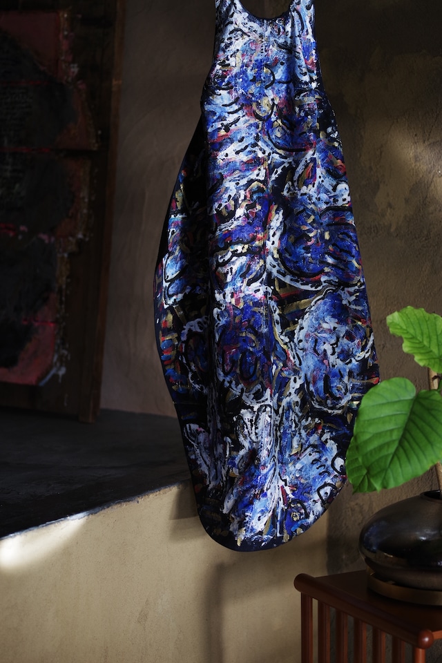 Apron → Acrylic paint. Written in layers. In the laundry . Peeling off. Little by little. Surely. From below. A different line appears. Ironing is impossible. Size is KAMATA SIZE.