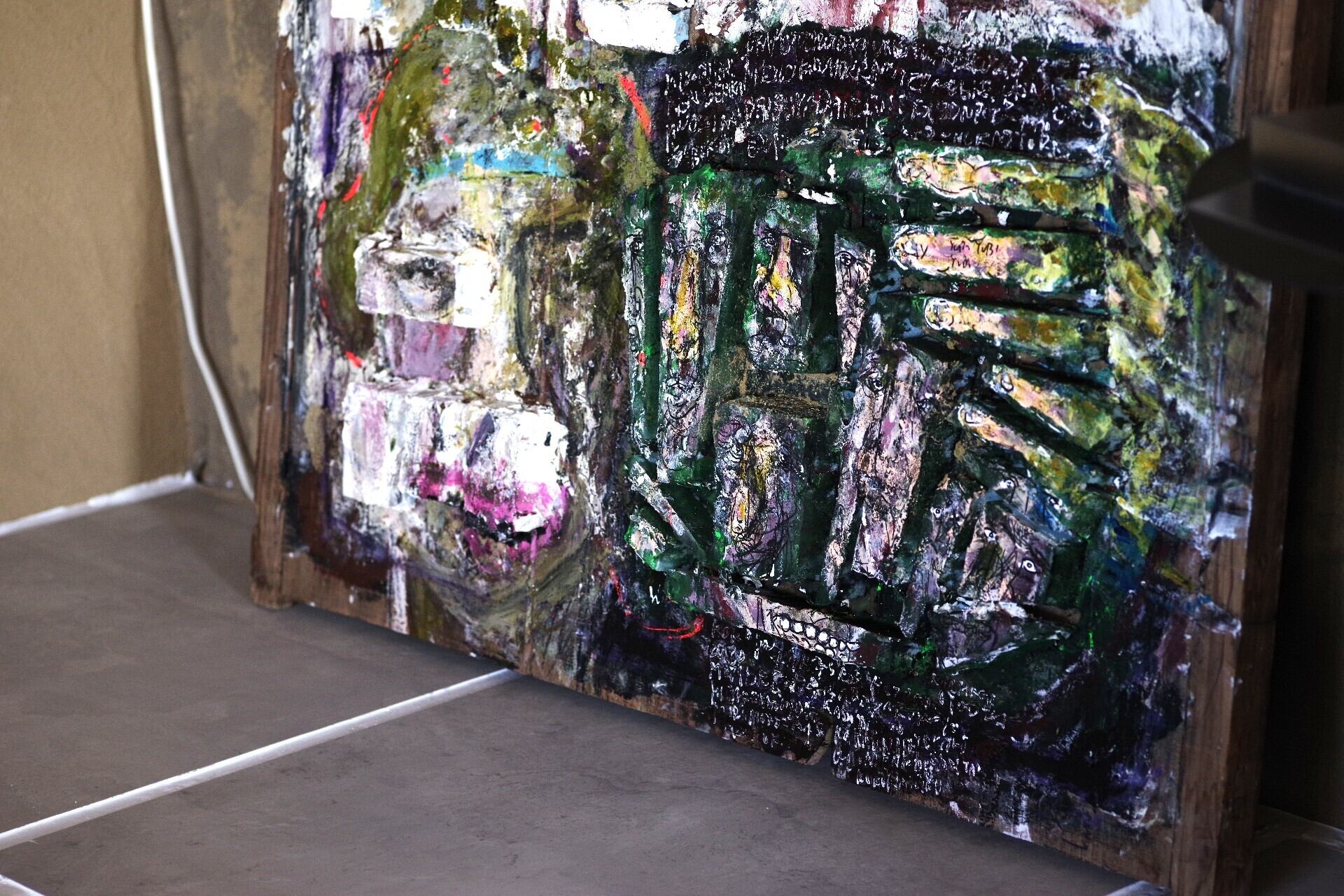 Materials: clay, styrofoam, acrylic paint.