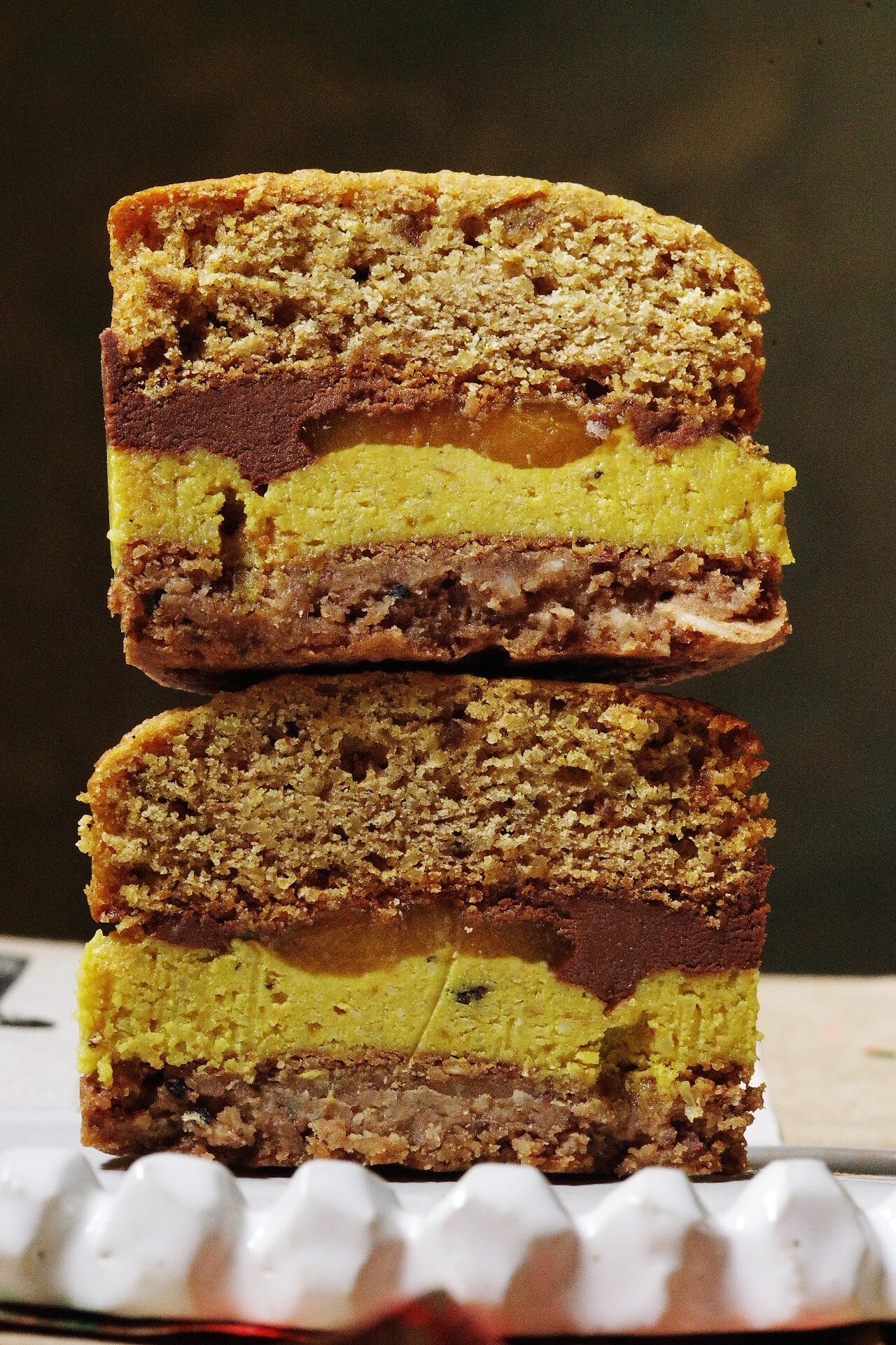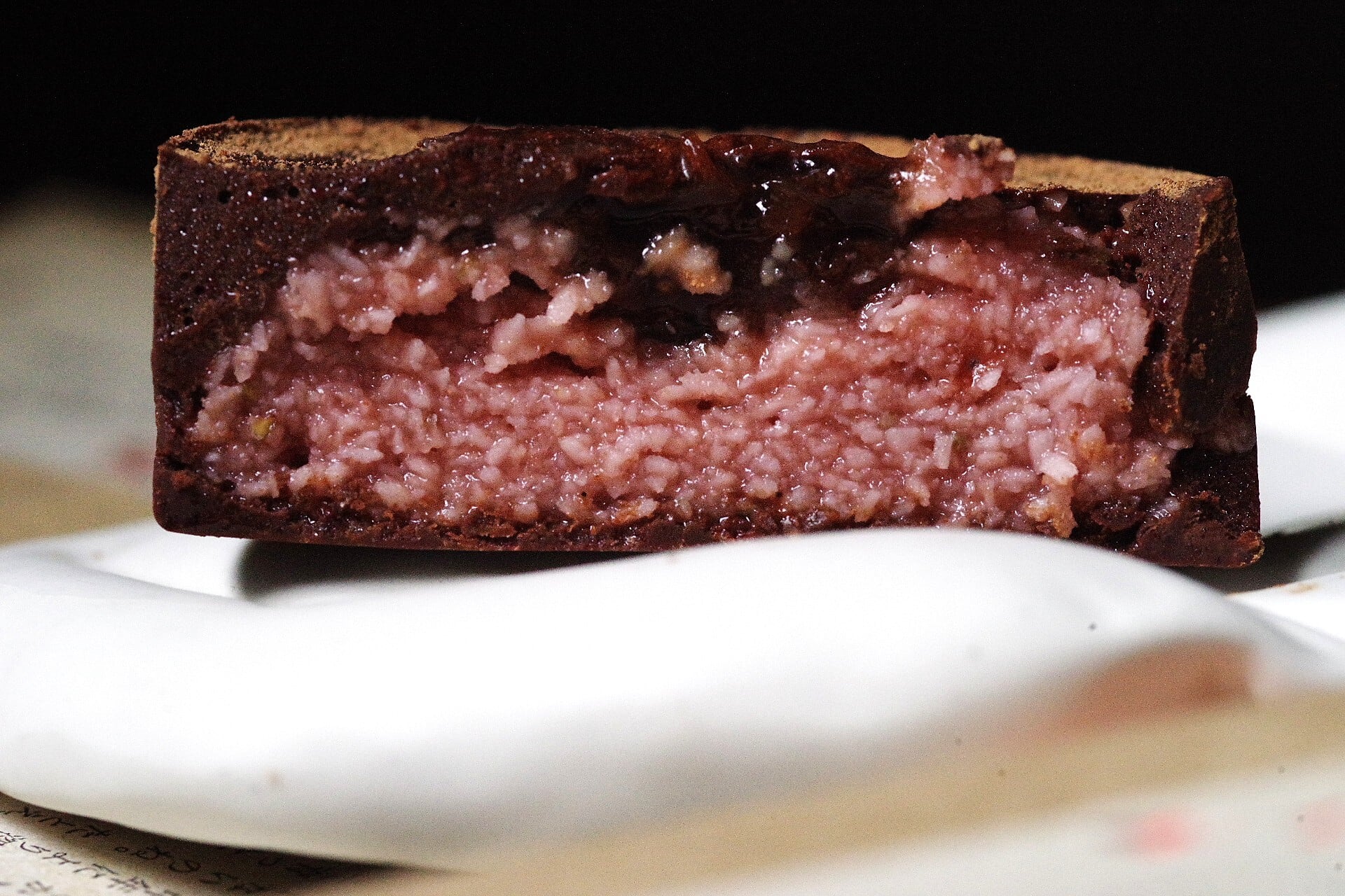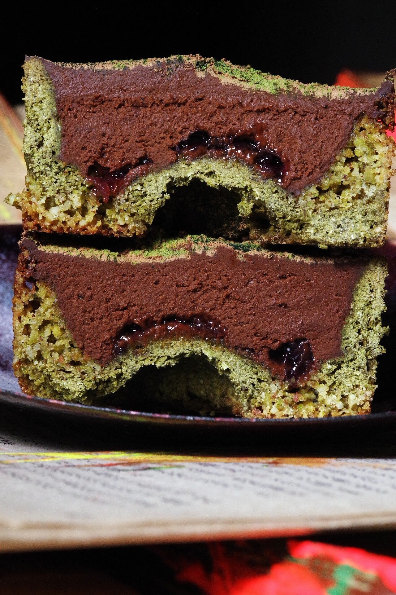 (写真ミドリの粉がけ京風。断面ピスタチオガナッシュ詰まってる)