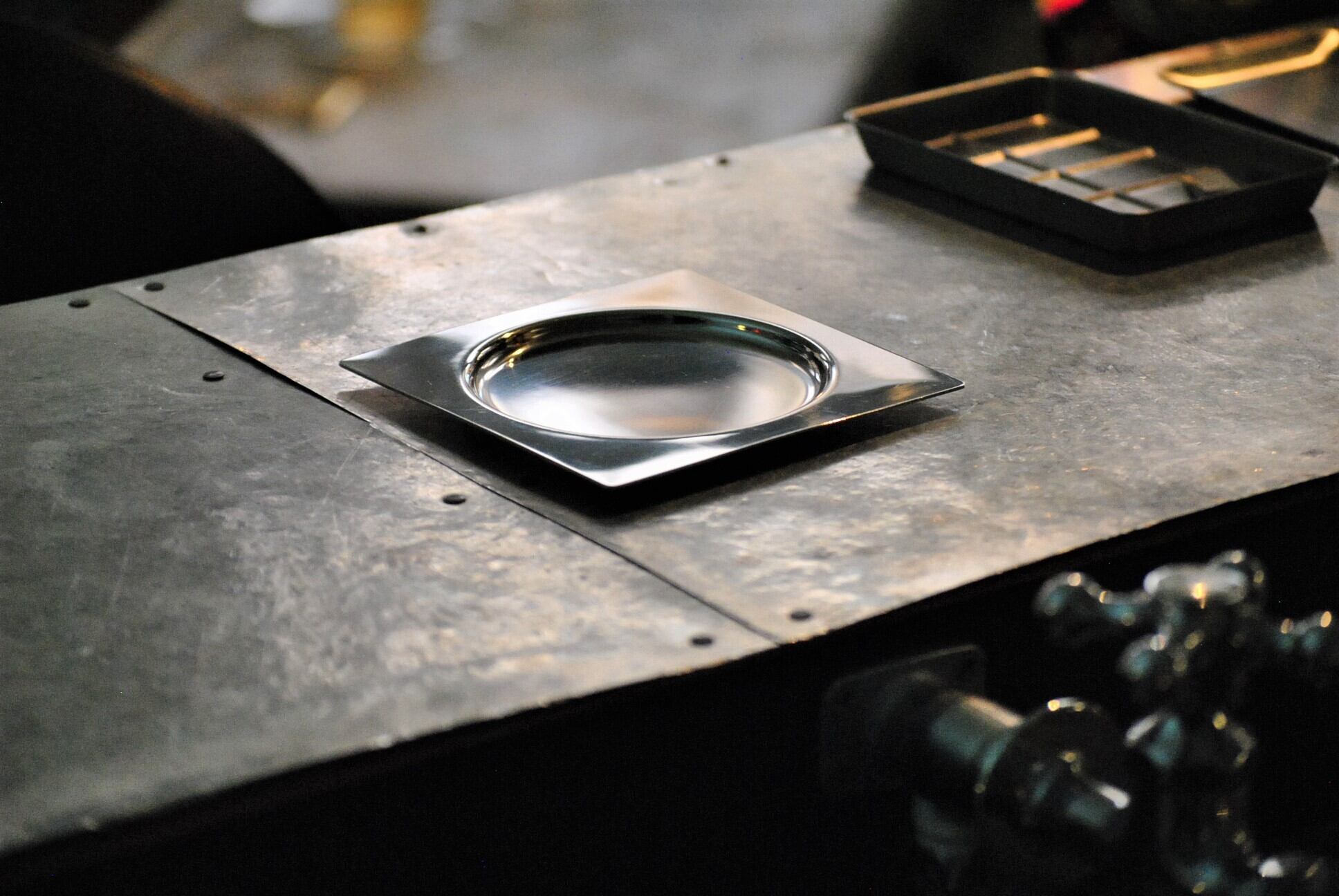 カビクッキー、フロランタン、台黒のシャーレ入りの連中が丁度乗る、ステンレスの小皿一枚。