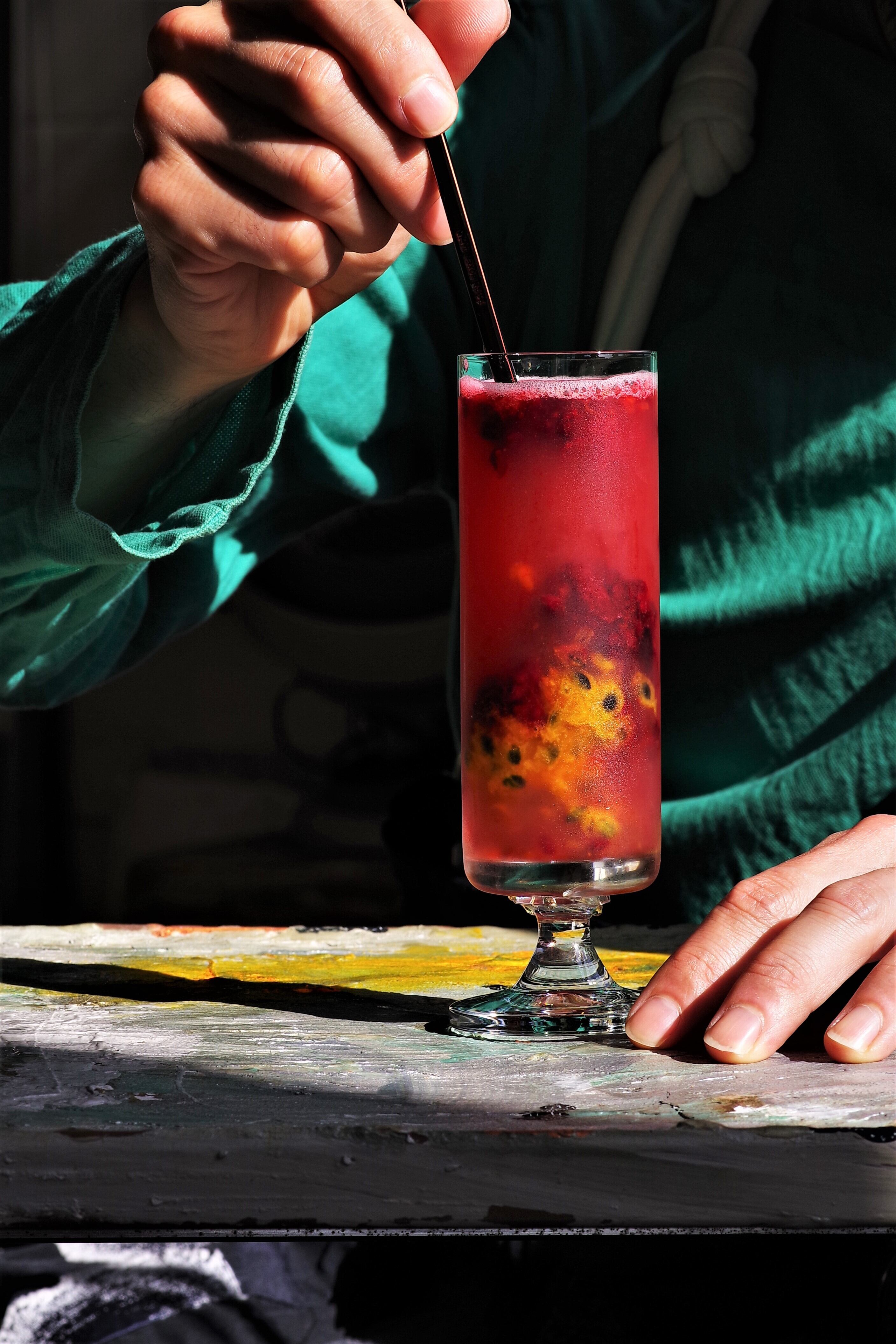 青森県産無農薬ブラックベリーと沖縄パッションフルーツリンゴ和え汁。酒とも。