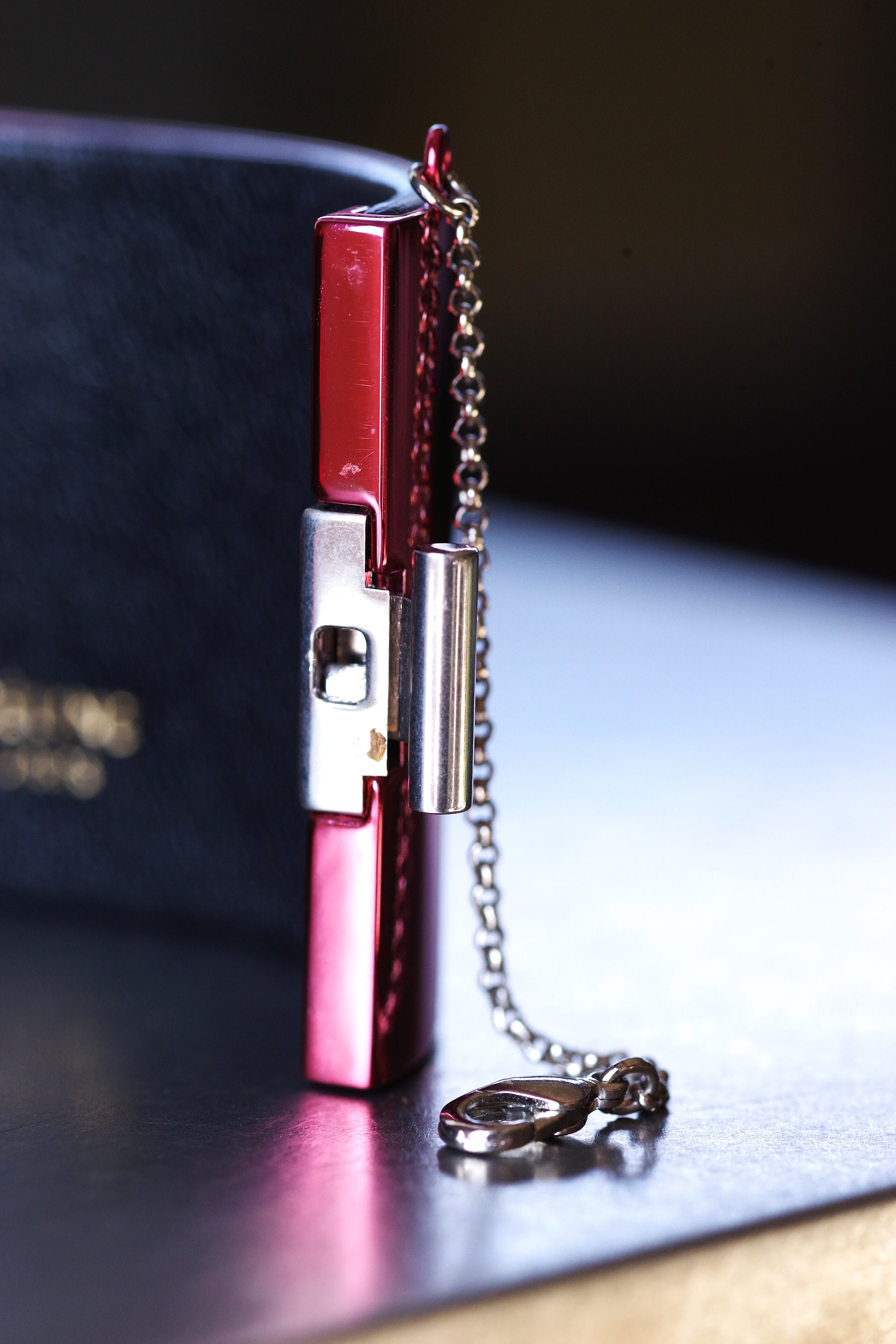 留めロック金具部分に、経年使用によるアタリ跡が見えます。写真を参考ください。