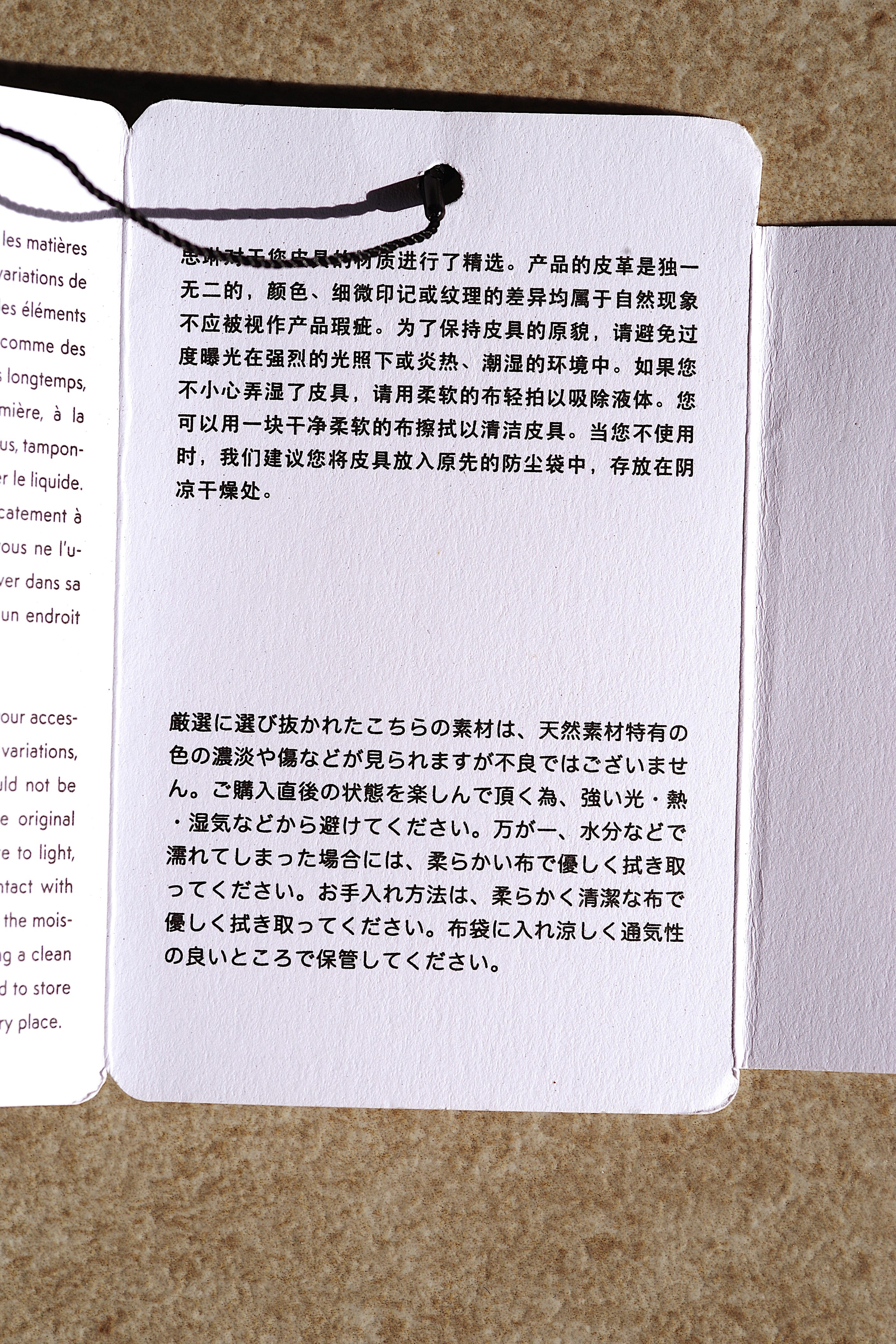 タグに取り扱い方の説明が。以下に↓