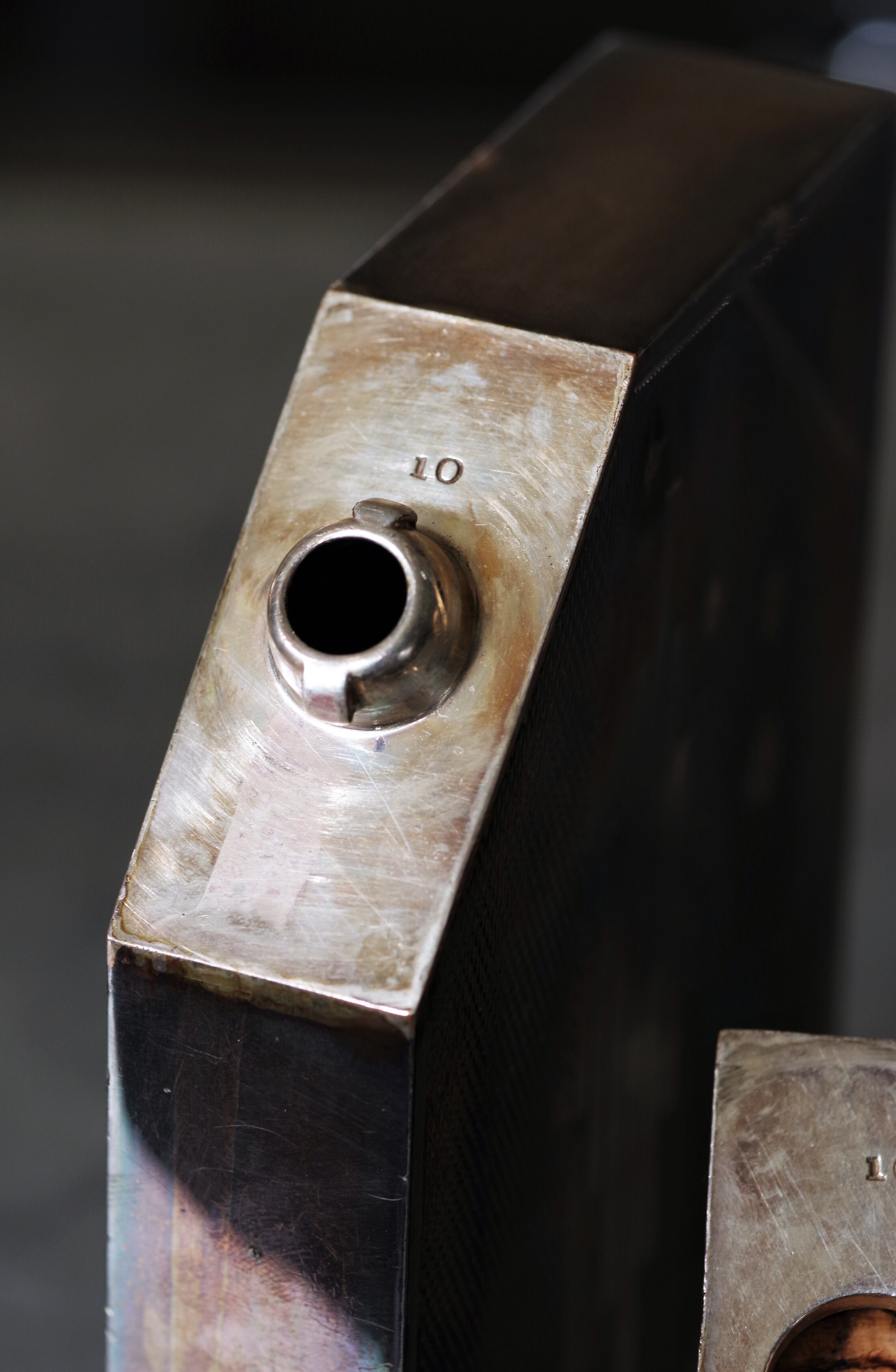 James Dixon & Sons の E.P.B.M.(ブリタニアメタル)製 銀メッキ ウィスキーボトル。