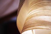 柔らかで温かみのある光が、複雑でありながら美しくシンプルなペーパー シェードを通過し、詩的な動きで彫刻の形に命を吹き込みます。